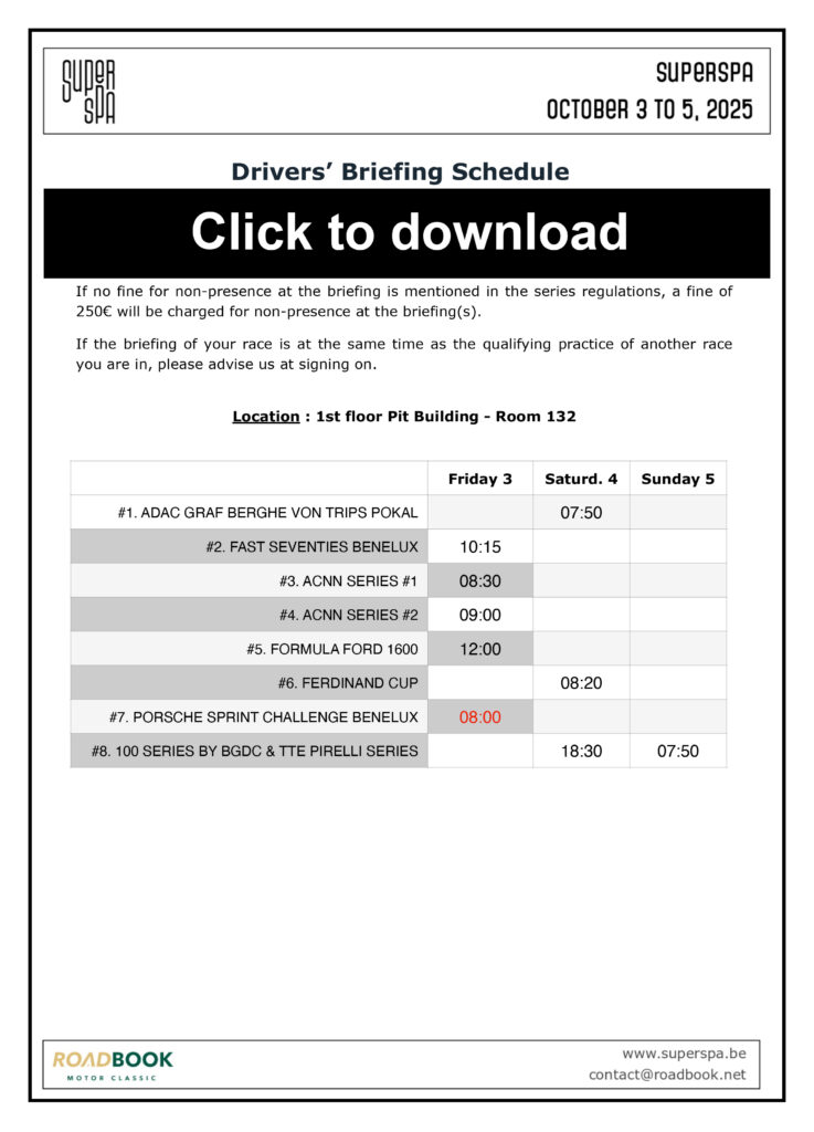🇬🇧 Download the Drivers’ Briefing Schedule - PDF